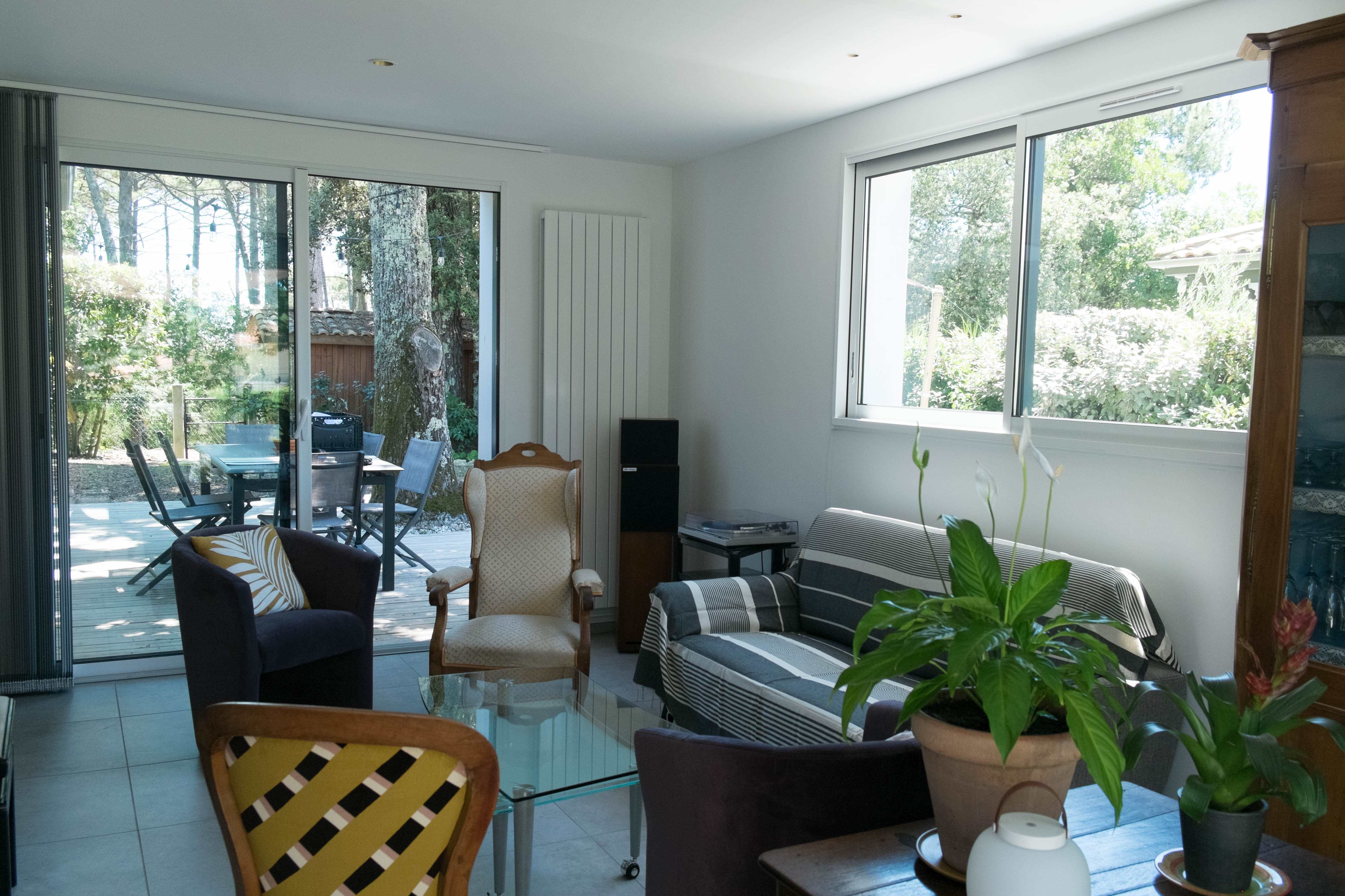La maison est équipée et meublée de façon fonctionnelle, dans l’esprit du bassin et de la forêt.