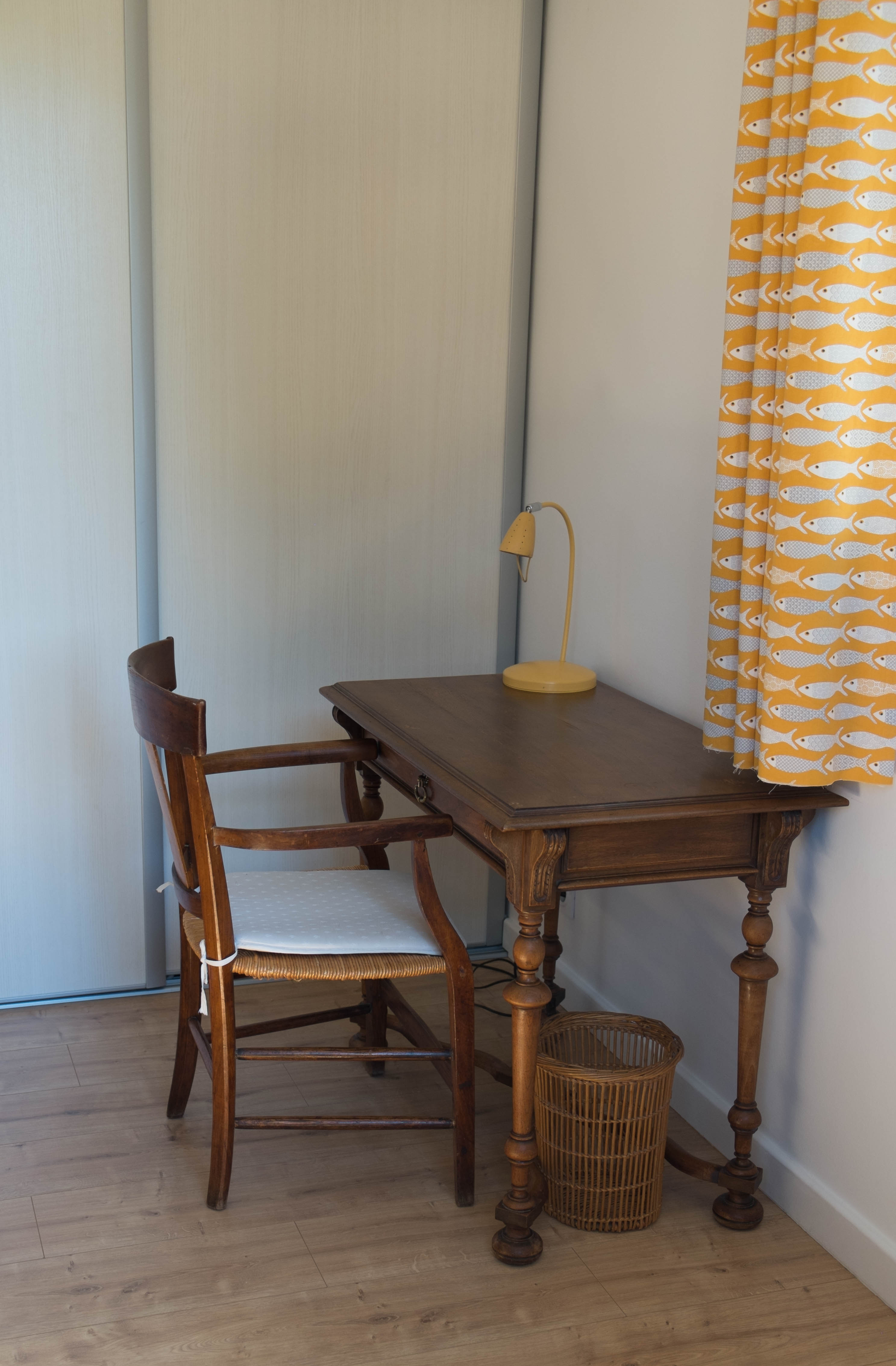 Le rez-de-jardin est équipée et meublée de façon fonctionnelle, dans l’esprit du bassin et de la forêt.